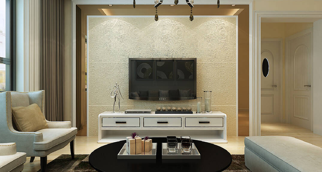 鑫江桂花園2室2廳77平美式風格裝修客廳電視墻效果圖