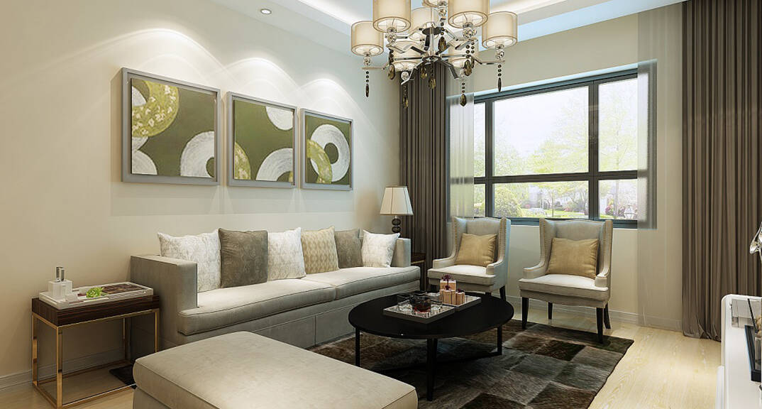 鑫江桂花園2室2廳77平美式風格裝修客廳效果圖