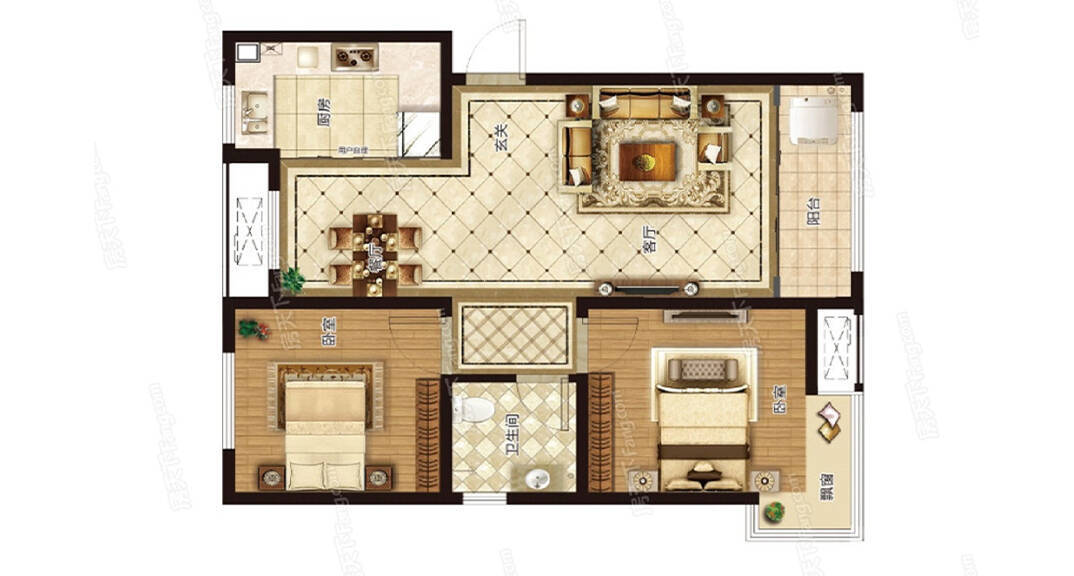 鑫江桂花園2室2廳77平美式風格裝修戶型圖