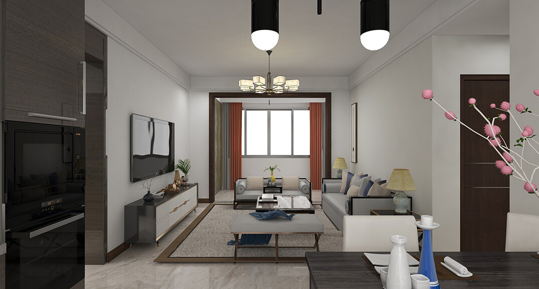 青安·海悅居86㎡二室二廳客廳電視現代簡約風格裝修案例效果圖