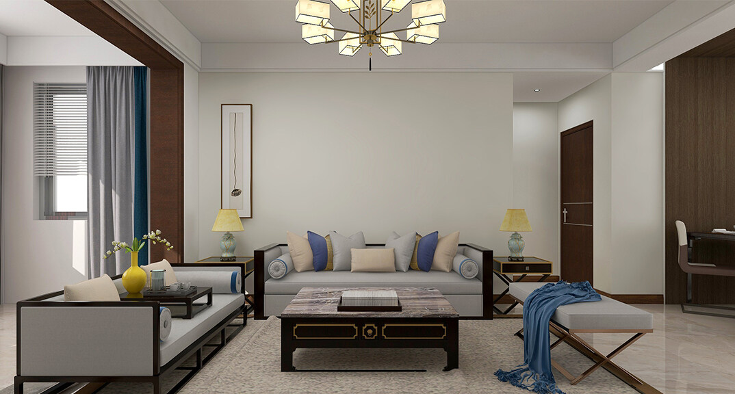 青安·海悅居86㎡二室二廳客廳沙發現代簡約風格裝修案例效果圖
