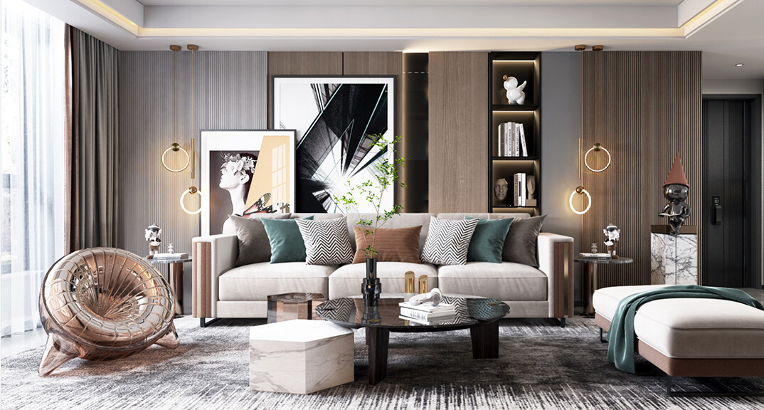 青鐵海譽府143㎡三室二廳客廳輕奢風格裝修案例效果圖
