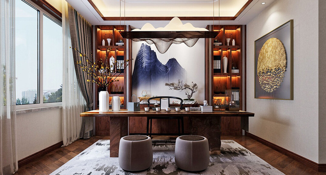 龍湖原山400㎡別墅書(shū)房美式風(fēng)格裝修案例效果圖