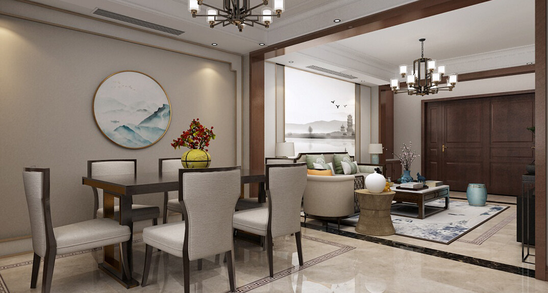 楓林小鎮230㎡別墅客餐廳新中式風格裝修案例效果圖