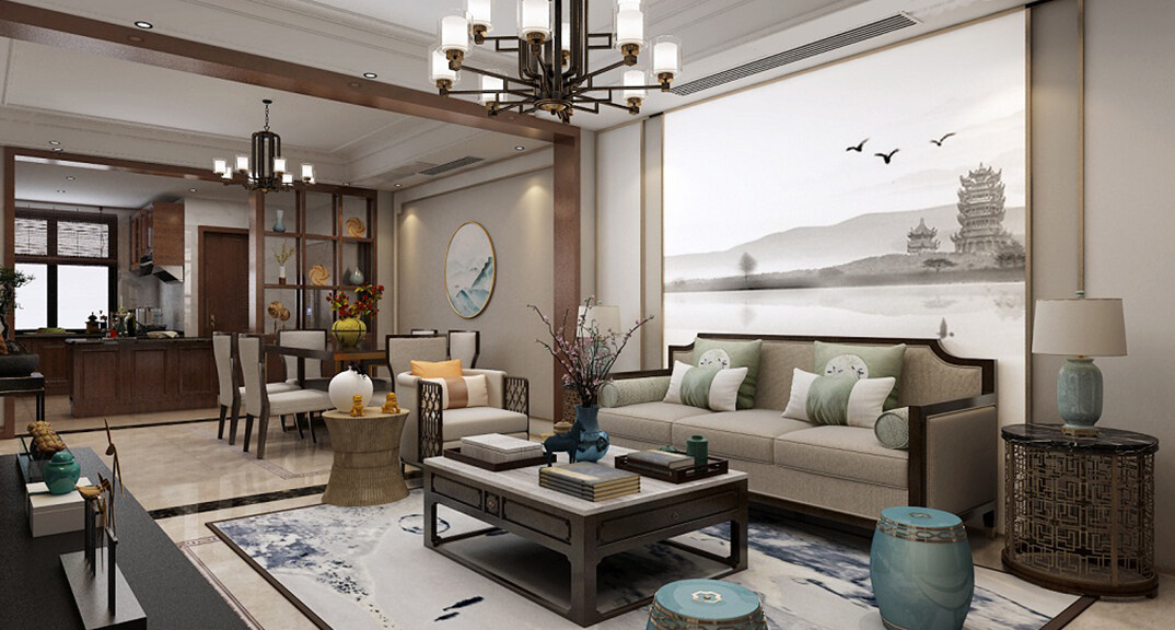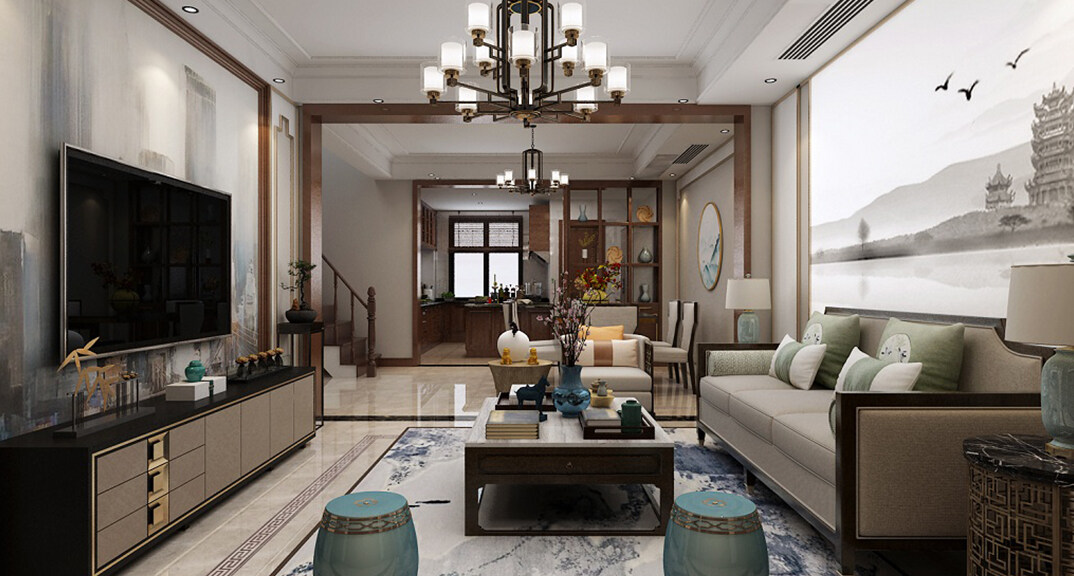 楓林小鎮230㎡別墅客廳新中式風格裝修案例效果圖