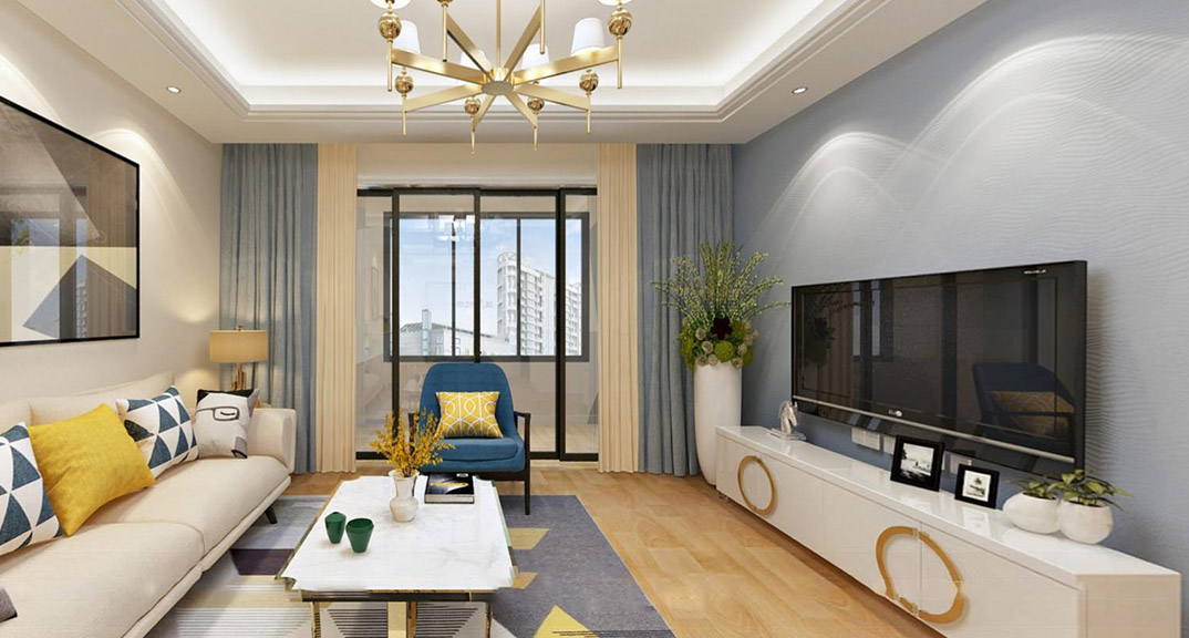 浮來春公館142㎡四室兩廳客廳現代簡約風格裝修案例效果圖