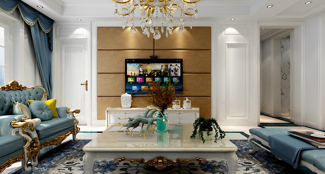 白鷺灣180㎡四室兩廳客廳電視新中式風格裝修案例效果圖